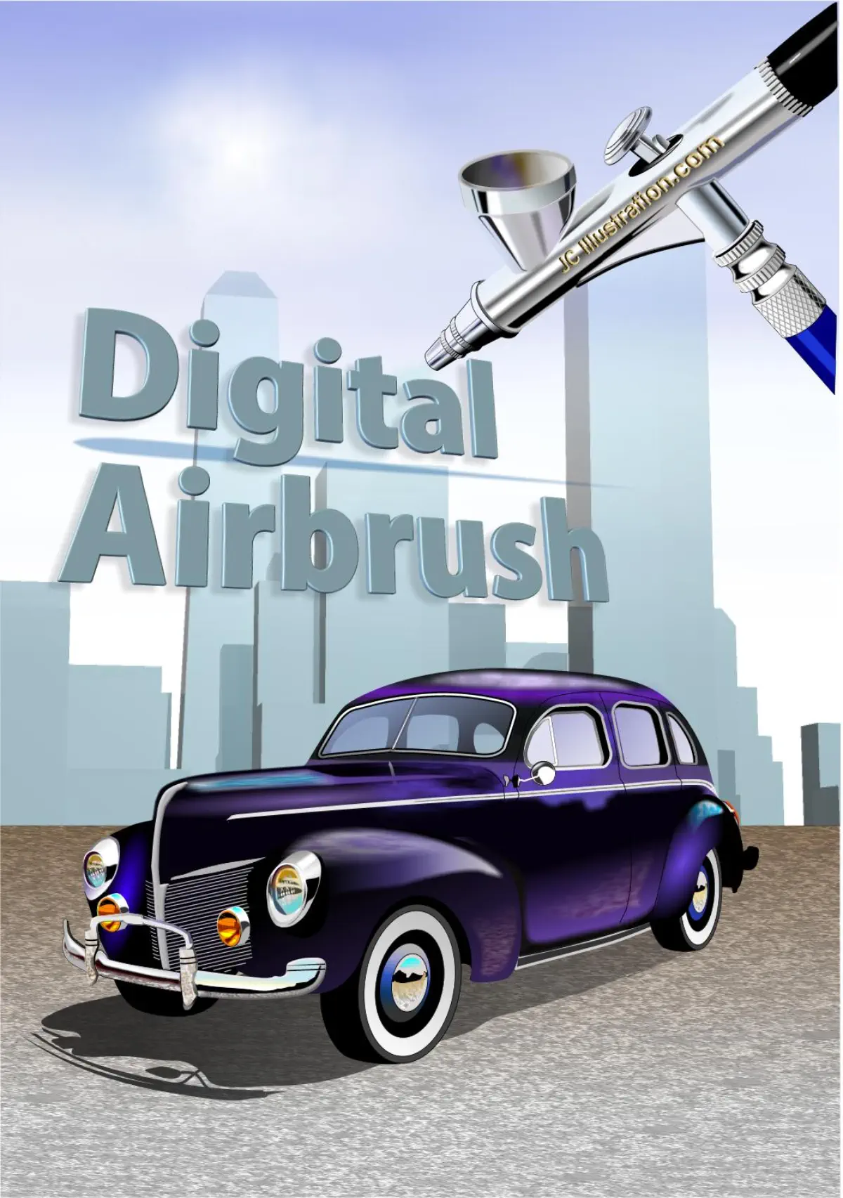 2D All Vector Classic Car Illustration Simulating Nostalgic Airbrush Look