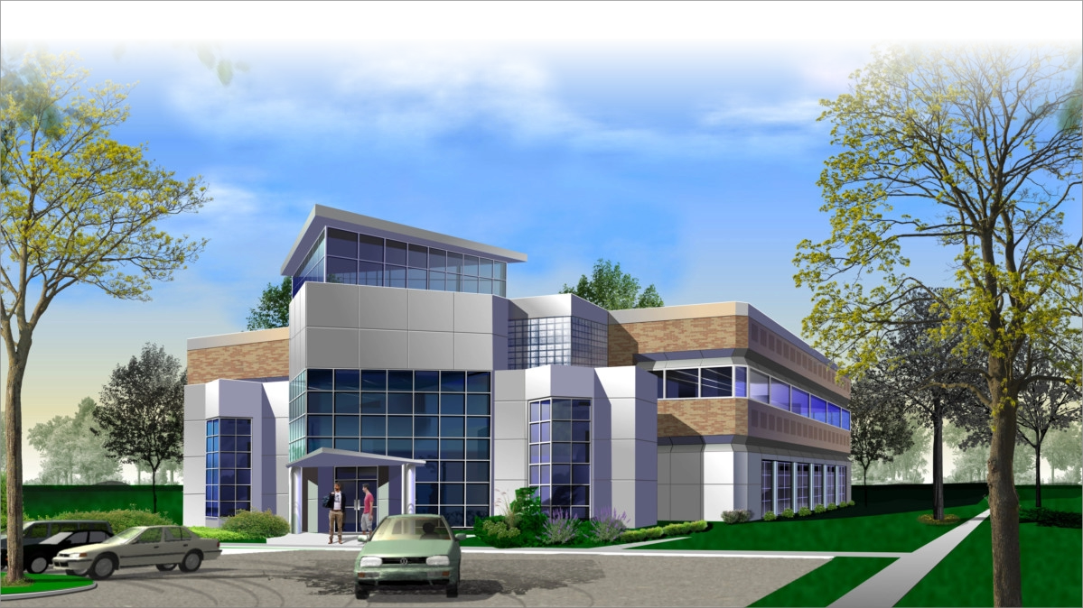 3D Rendering of ETC Headquarters Combined With Static 2D Illustration