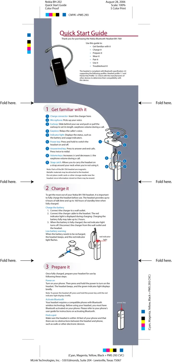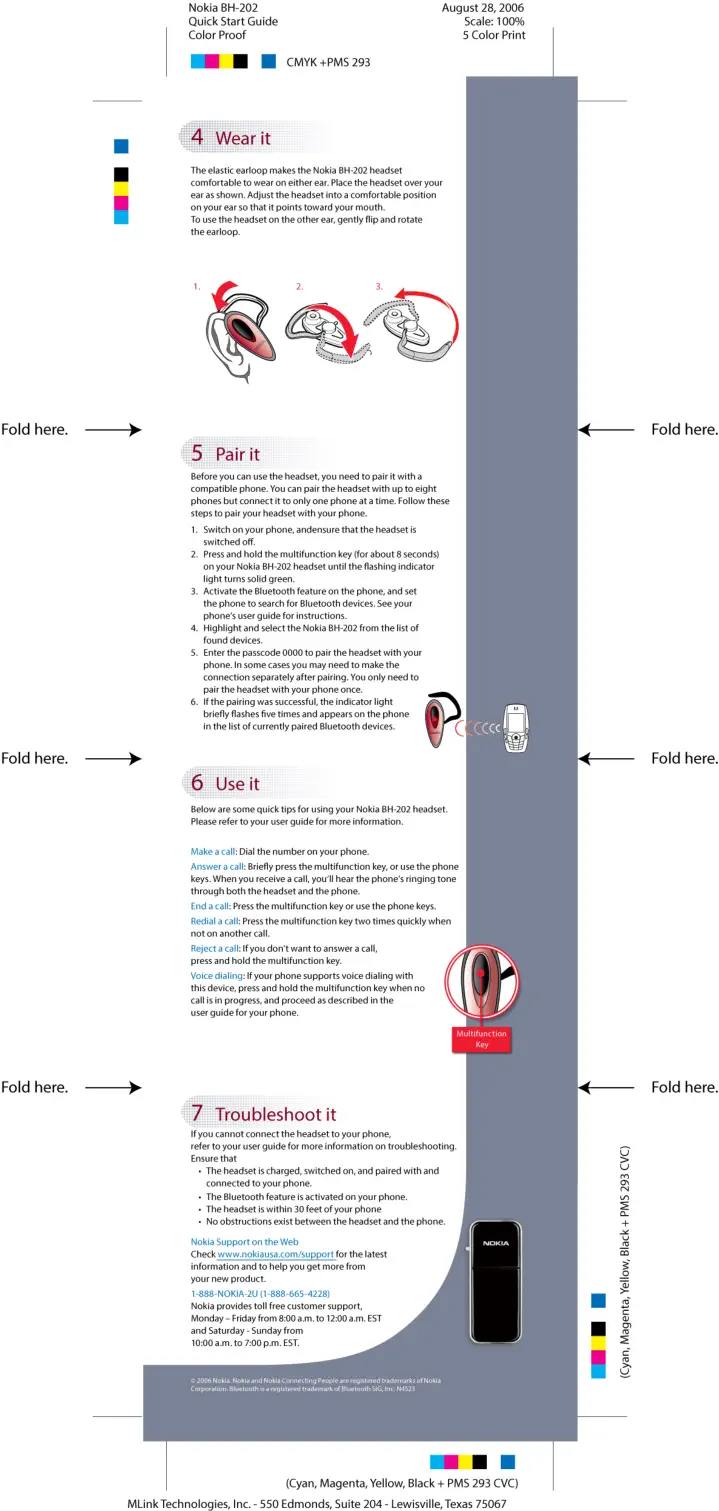 At MLink, I did design and print production for NOKIA Quick Start Guides which were 4 panel printed brochures packaged with each phone for the user to quickly learn how to use their phone. Worked with Instructional Designer on storyboards Design and production of layout, illustrations and images Used Adobe Illustrator as the tool of choice to produce final art files, then converted to Print Ready PDF files for the printer.